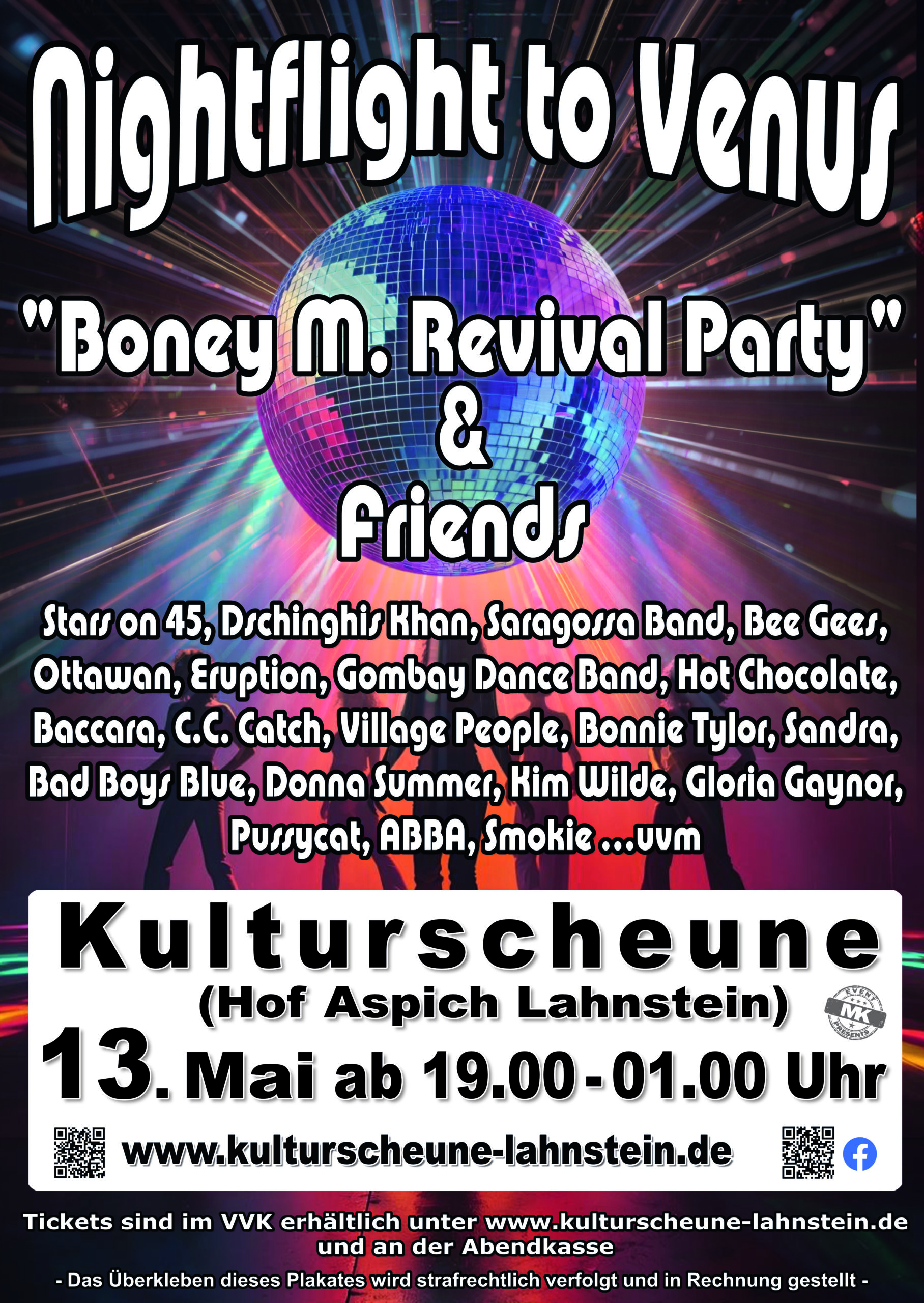 Nightflight To Venus heißt es am Mittwoch 13. Mai ab 19:00 Uhr bis 01:00 Uhr bei der Boney M. Revival Party & Friends auf dem Aspich.